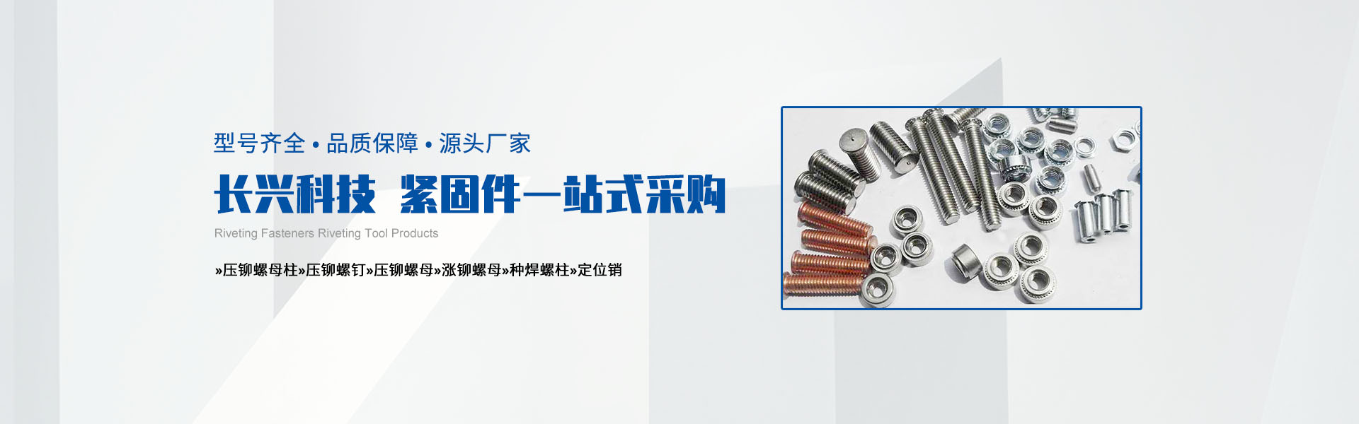 主要產品包括PEM壓鉚緊固件,面板緊固件(松不脫),不銹鋼卡式螺母,部分冷鐓螺母以及非標車制零部件,拉鉚螺母。手動鉚接工具,氣動鉚接工具。代理銷售美國雅固拉(Accuride)電子滑軌,美國索斯科(Southco)鎖具等等國內外知名品牌。廣泛地應用于電子機箱,通信設備,機械設備,船舶制造、汽車制造、裝飾裝潢、電器儀表等各種行業(yè)。
